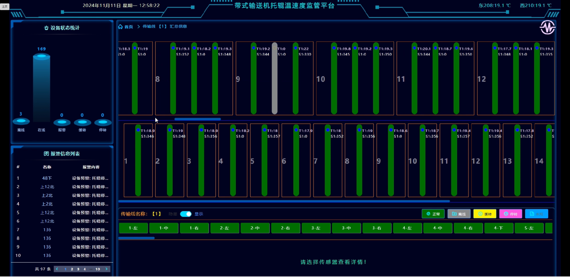 托輥是帶式輸送機(jī)中數(shù)量最多的組成部件,在運(yùn)行過程中,由于托輥停轉(zhuǎn)與皮帶發(fā)生摩擦引起發(fā)熱,最終引發(fā)火災(zāi)的事故層出不窮。無線組網(wǎng)的托輥溫速度檢測裝置可在線監(jiān)測托輥的轉(zhuǎn)速、軸溫變化趨勢(shì),及時(shí)反映當(dāng)前托輥的運(yùn)行狀態(tài),代替人工巡檢,為帶式輸送機(jī)的穩(wěn)定運(yùn)行保駕護(hù)航。